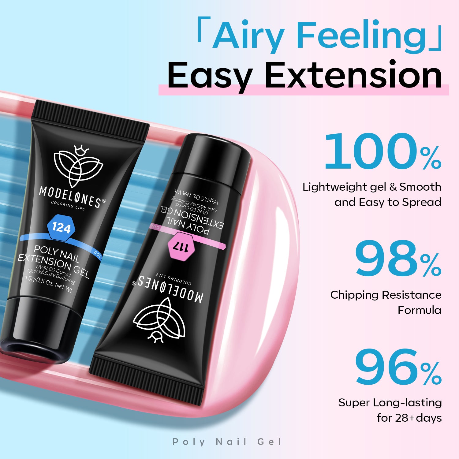 The Modelones’ Poly Nail Extension Gel offers stronger, durable wear and easy extension experience with rich color formula and lightweight texture.