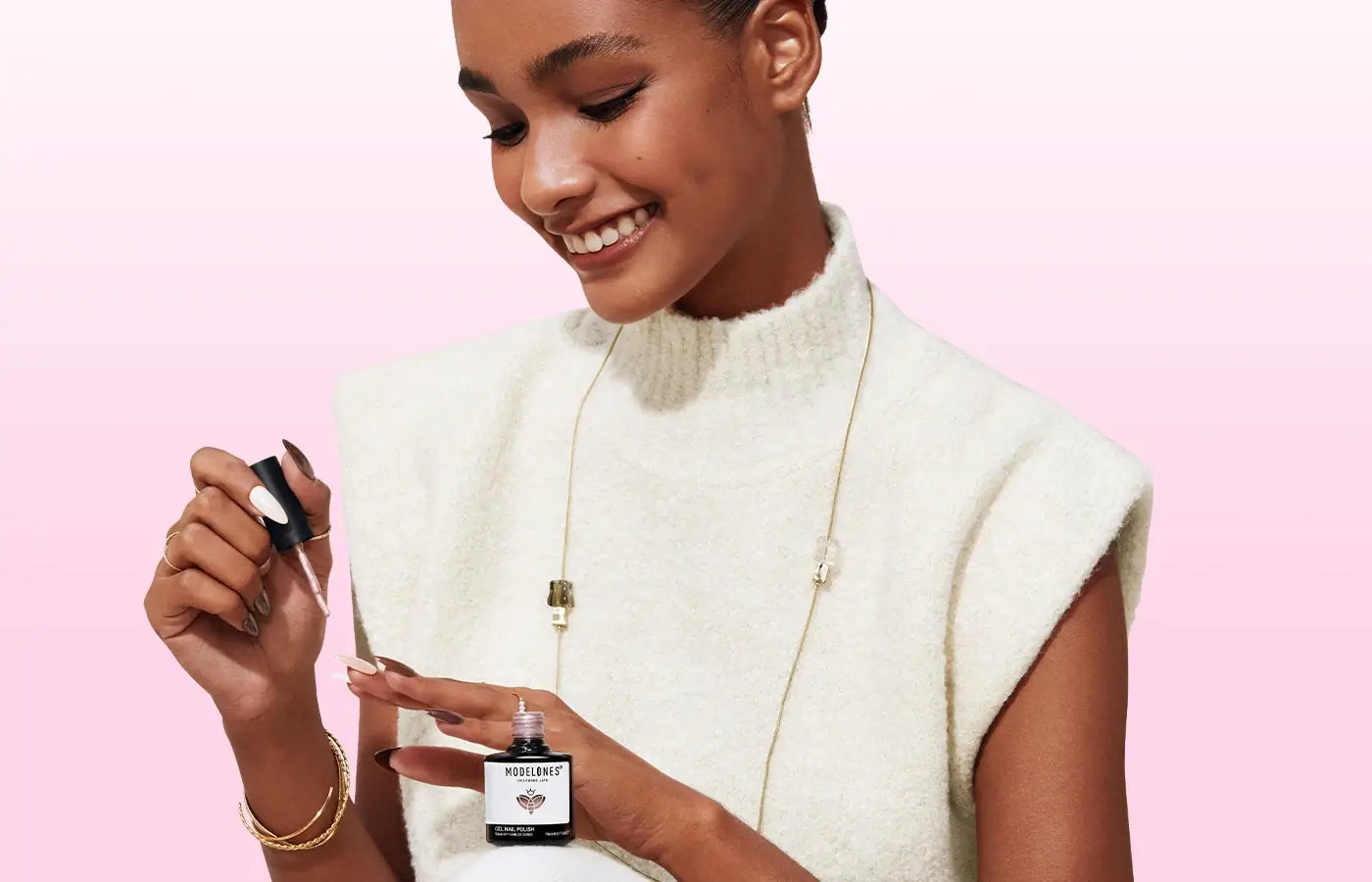 modelones content licensing, including Bustle, ELLE, SheKnows, Glamour, Byrdie, and more. It also includes a "2024 Readers' Choice NailPro"