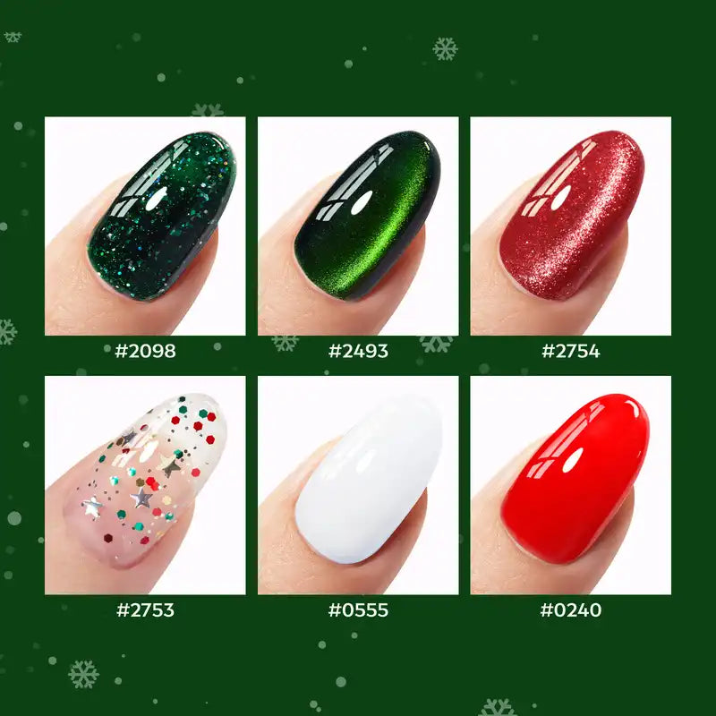shades: #2098(glitter), #2493(cat eye), #2754(cat eye), #2753(glitter), #0555(cream), #0240(cream)