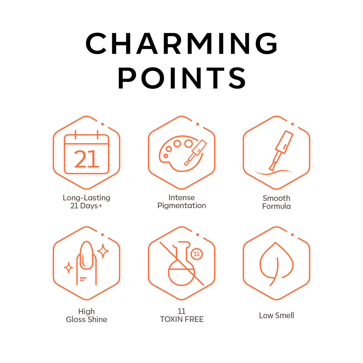 • 11 Toxin Free: Formaldehyde/Formaldehyde resin/ Dibutyl Phthalate/ Toluene/ Parabens/ Sulfates/ Camphor/ Triphenyl Phosphate/ Xylene/ Ethyl Tosylamide/ Bisphenol/