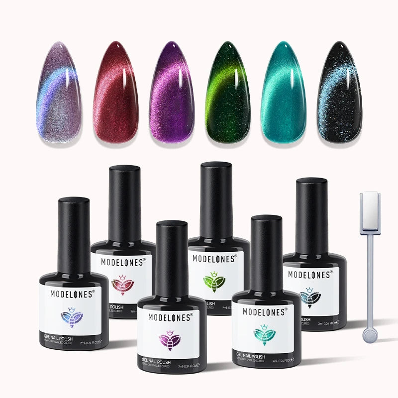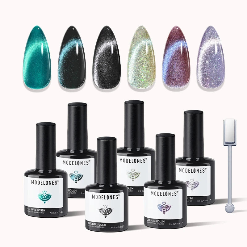 This Hema-Free gel nail polish brings together 6 kinds of green cat eye shimmer, which enchanting tones, bring a new dimension of elegance and intrigue to your nails.