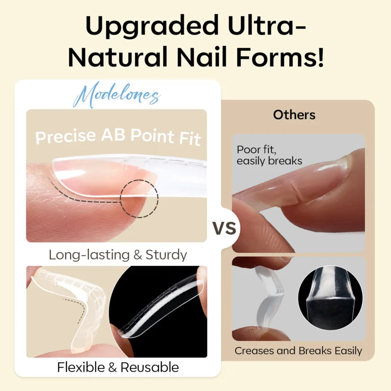 Spread the Poly Nail Gel evenly on the dual form and press on your nails. Remove the dual form after curing and buff to your favorite nail shape.