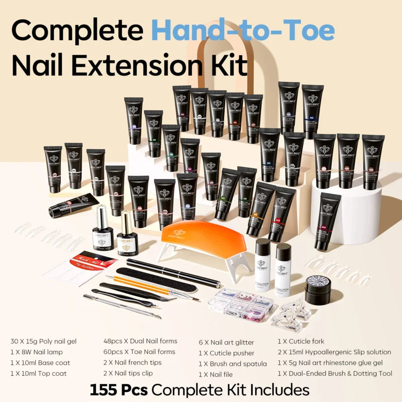 Complete Poly Nail Gel Kit with 32 Colors (15g each)