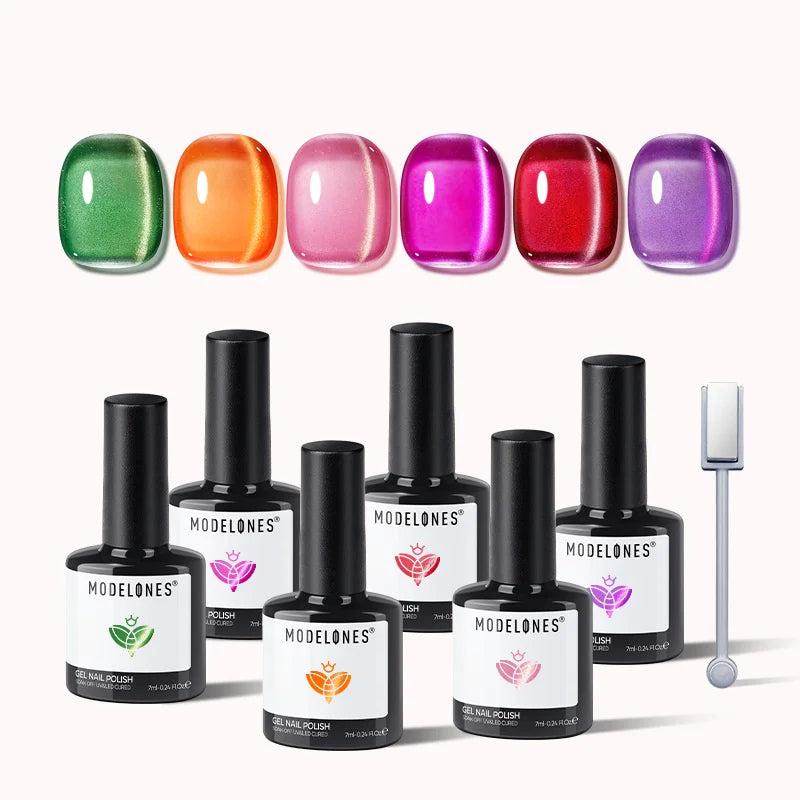 This collection brings you six stunning, multidimensional shades that create a unique cat-eye effect when activated by a magnetic wand. Whether you're a nail art enthusiast or simply want to add a touch of magic to your manicure, this set allows you to achieve a salon-quality, galaxy-inspired look from the comfort of your home.