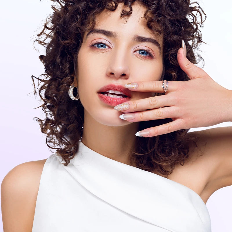 modelones content licensing, including Bustle, ELLE, SheKnows, Glamour, Byrdie, and more. It also includes a "2024 Readers' Choice NailPro"