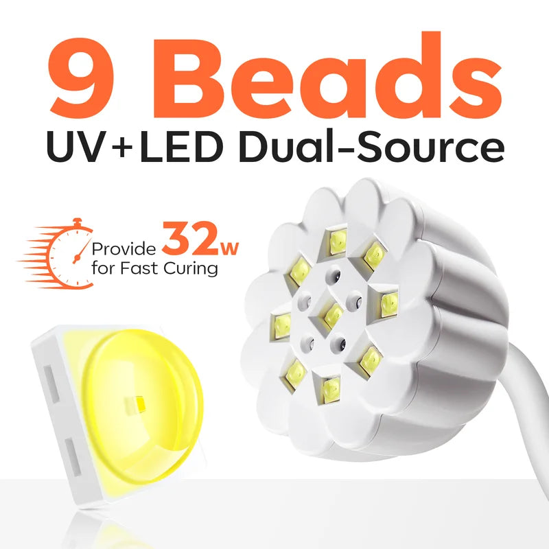 360°Adjustable Gooseneck Hose: This UV light for nails is designed with a long gooseneck, it can be bent and swiveled arbitrarily, allowing you to set the perfect lighting direction and angle, enabling you to focus the light exactly where you need it.