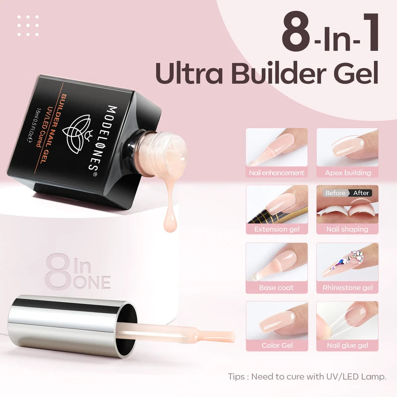 (Optional)Brush on and level the builder gel onto the nails to your desired shape.