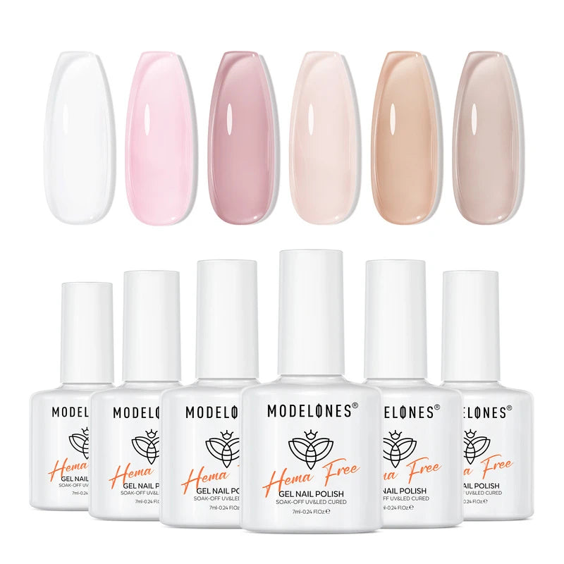 This light-colored, jelly-textured gel nail polish set is HEMA and TPO free, making it perfect for everyday life and work environments.