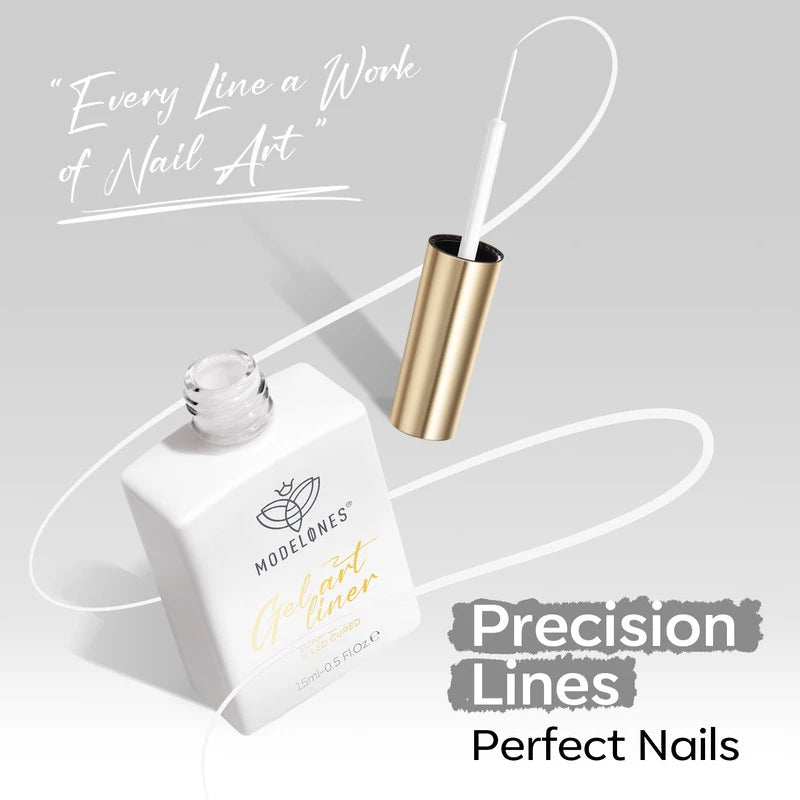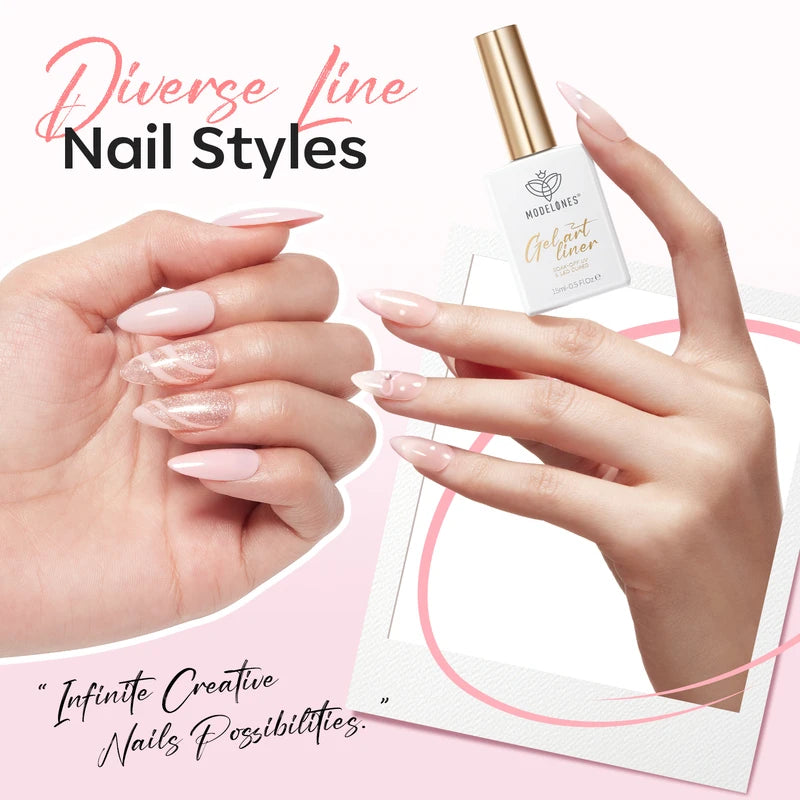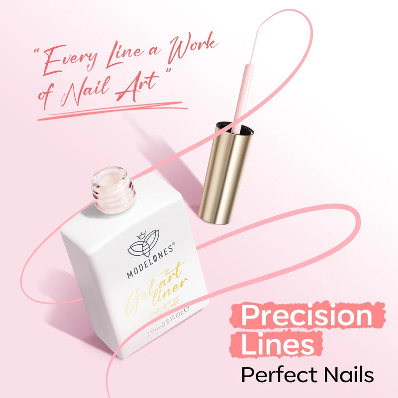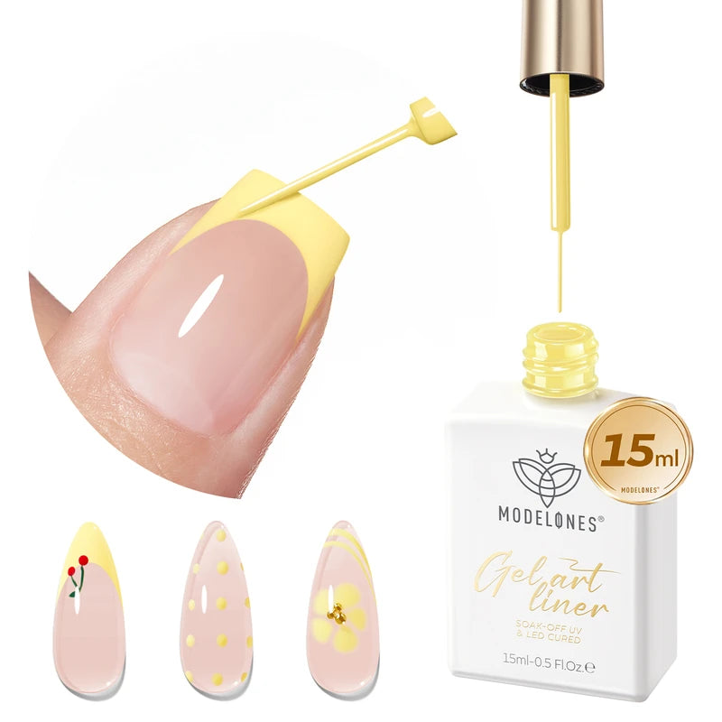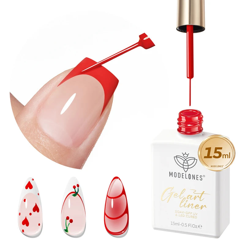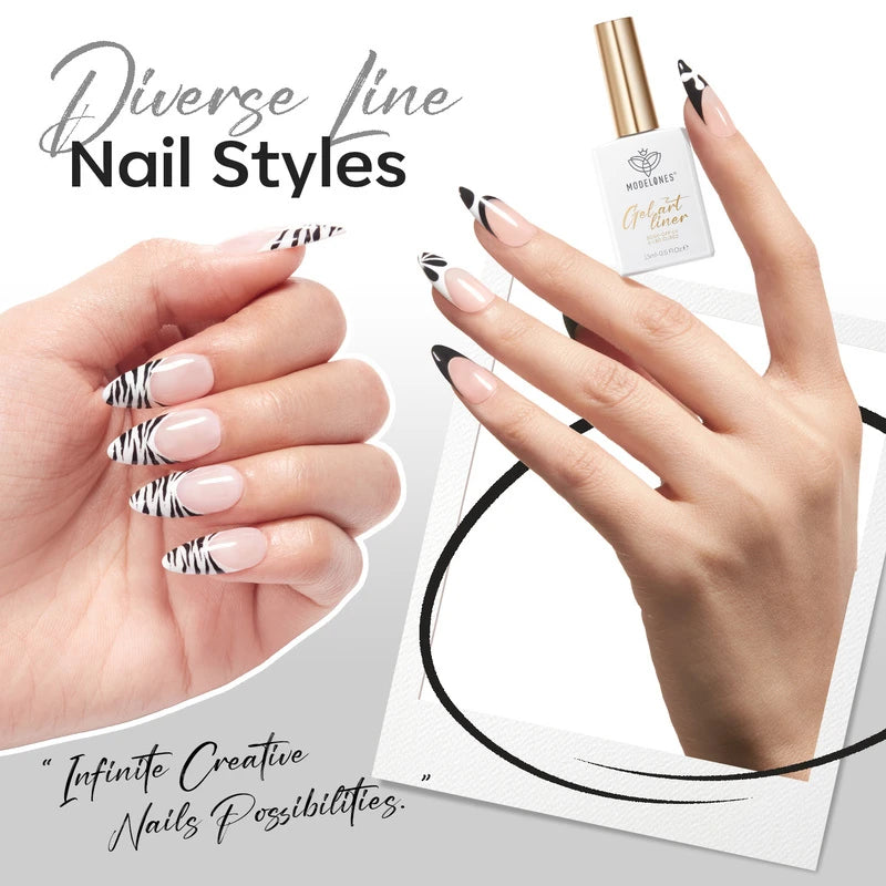 Release your inner Picasso with Modelones Gel Art Liners! Available in 5 classical shades. Enjoy these extremely pigmented, fullcoverage gel paints with a thin brush built-in. Design abstract lines, dainty hearts, french tips, and endless creations.