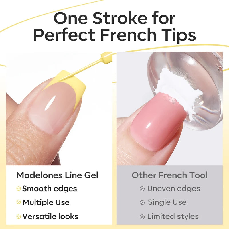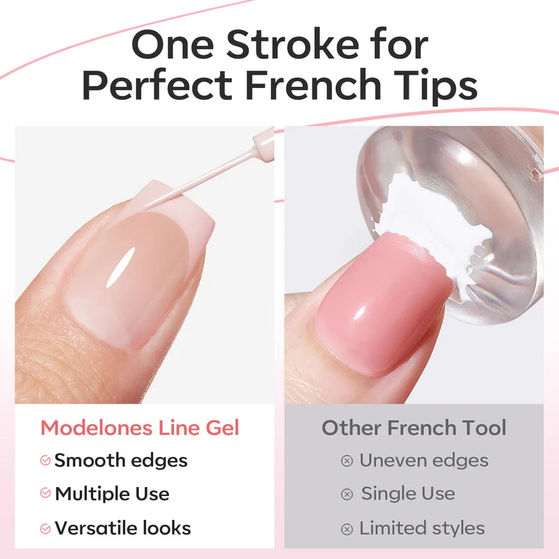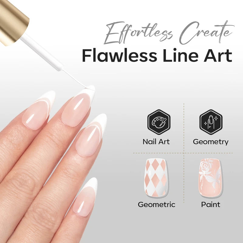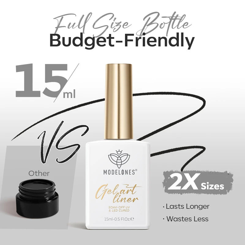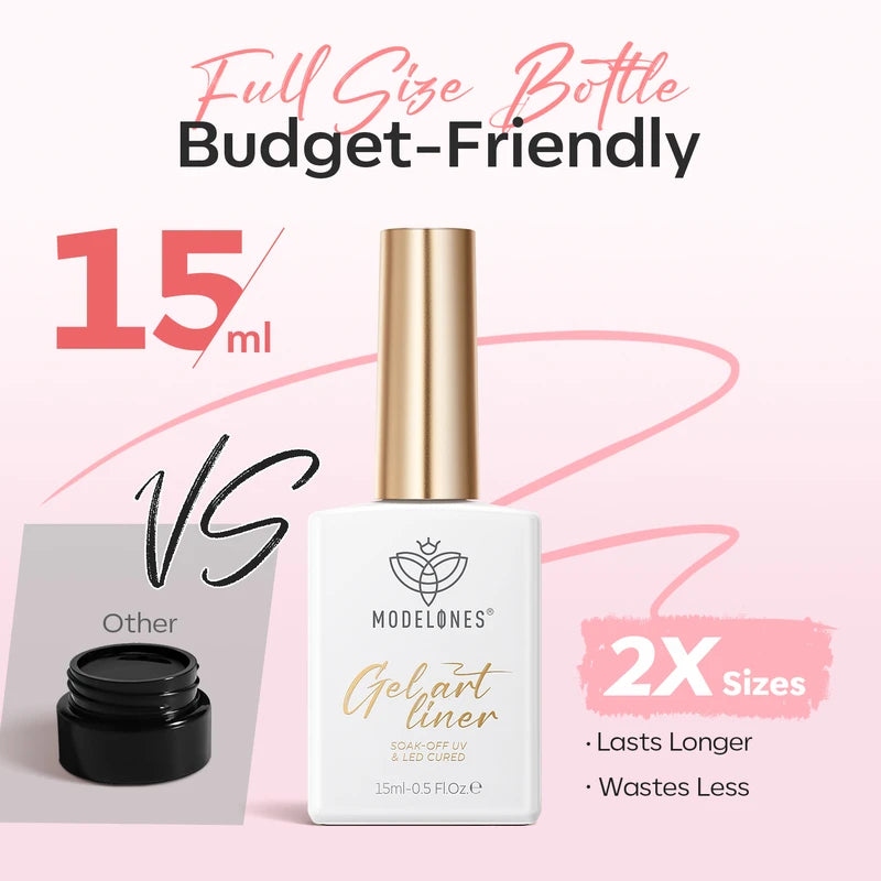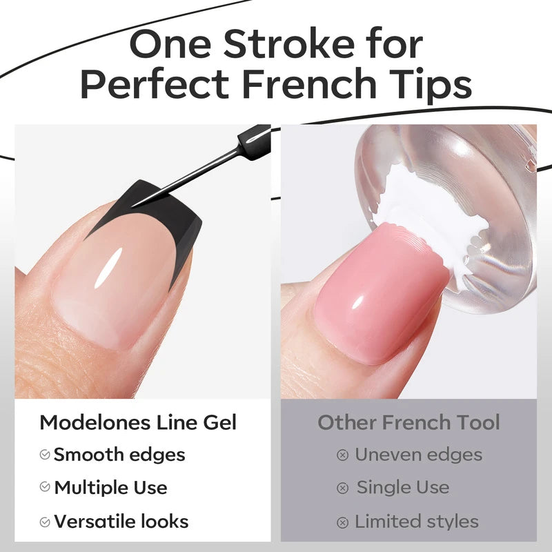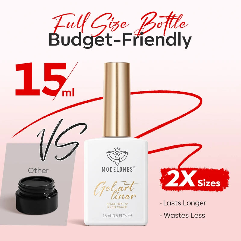 Release your inner Picasso with Modelones Gel Art Liners! Available in 5 classical shades. Enjoy these extremely pigmented, fullcoverage gel paints with a thin brush built-in. Design abstract lines, dainty hearts, french tips, and endless creations.