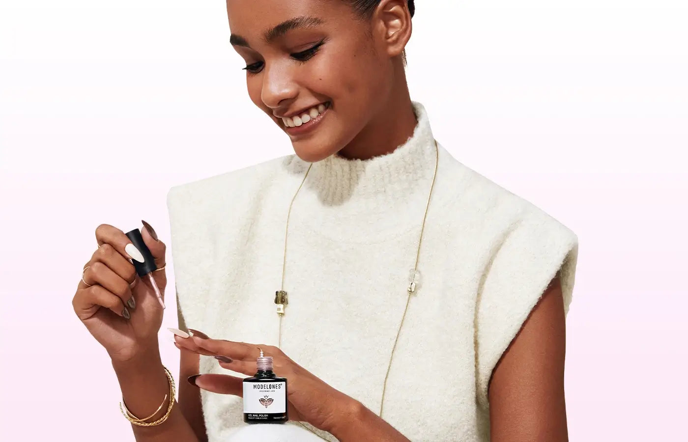 modelones content licensing, including Bustle, ELLE, SheKnows, Glamour, Byrdie, and more. It also includes a "2024 Readers' Choice NailPro"