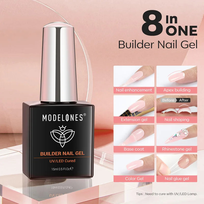 (Optional)Brush on and level the builder gel onto the nails to your desired shape.
