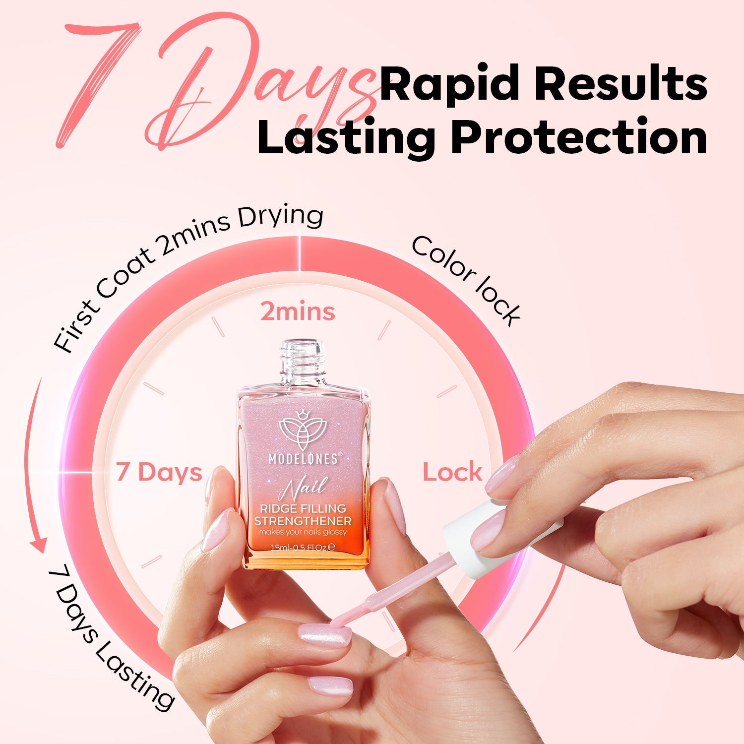Step3: After 2mins drying, enjoy wearing 7 days of nail treatments (The effect will be better when used with Nail Care Top Coat)