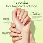 • Removes all types of soak-off nail products: Contains 90% acetone. Removes nail polish in 3s and gel polish in 5 mins. It can also remove acrylic powder, poly gel, dip powder, press-on nails, and more.