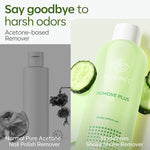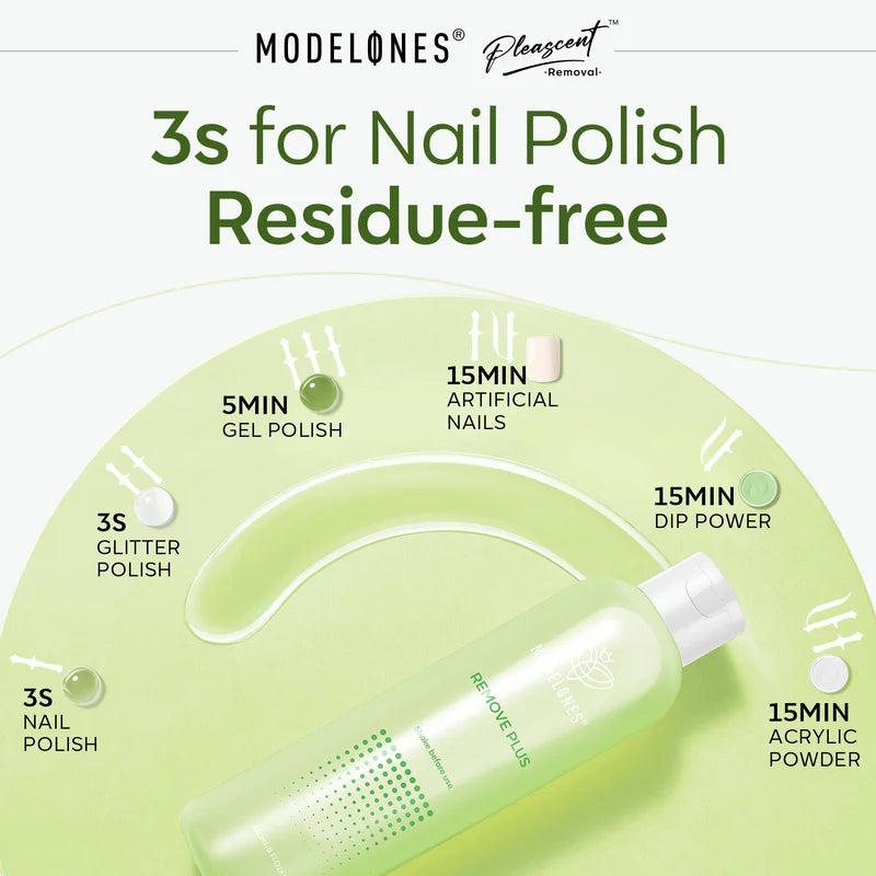 More than just clean removal – enjoy a pleasant experience in your nail-caring journey with 3-in-1 Acetone-based Remove Plus Liquid. Featuring 90% acetone and 10% natural oils, it removes all types of soak-off manicures. Works in 3 seconds for nail polish, 5 minutes for gel polish, and 15 minutes for acrylic powder, dip powder, and poly gel. This Acetone-base Romver Plus Liquid adds cucumber and carnation essences to the original base. Cucumber essence has a moisturizing effect, which can soothe and moisturize the nail surface; carnation essence can be a good anti-oxidant.🥒🌸