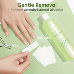 • The Gentlest Acetone-based Nail Polish Remover: Contains 10% natural essential oils. Lavender essential oil soothes skin from acetone irritation. Jojoba oil and grapeseed oil hydrate and moisturize, preventing dryness, white marks, and brittleness after nail removal.