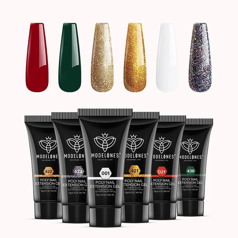 Spread the Poly Nail Gel evenly on the dual form and press on your nails. Remove the dual form after curing and buff to your favorite nail shape.