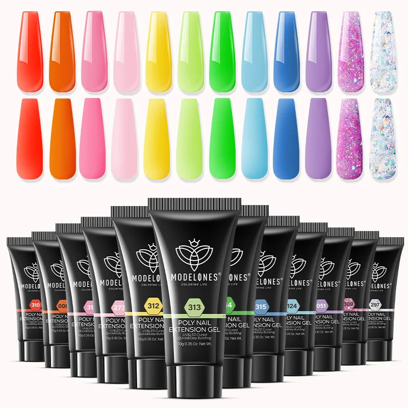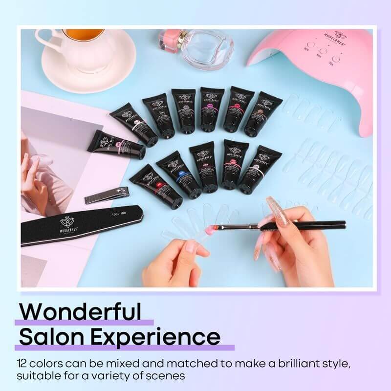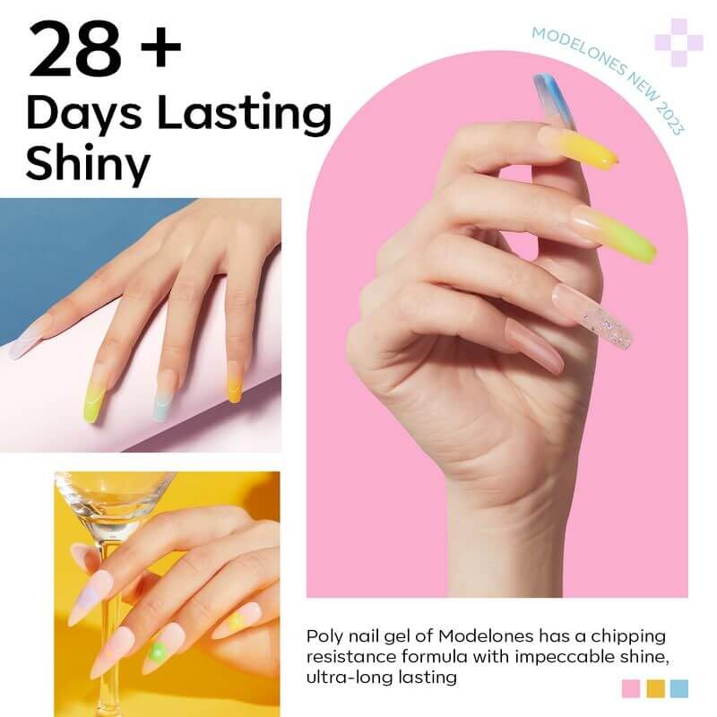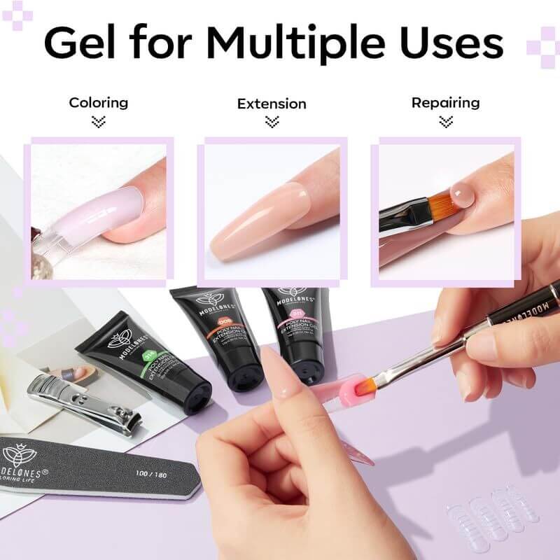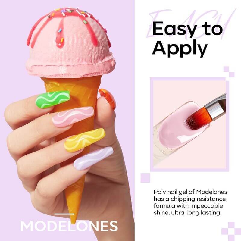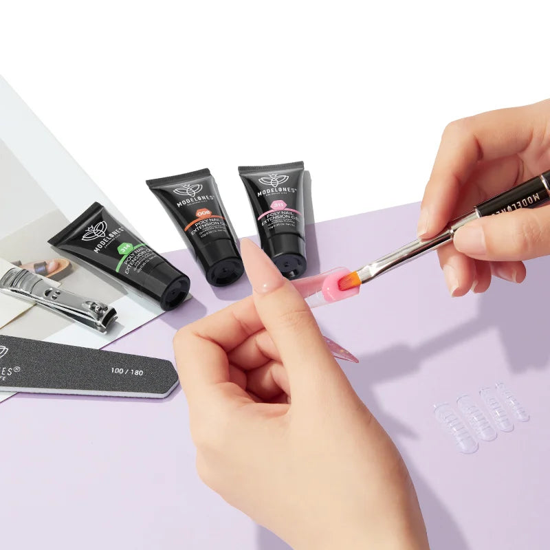 Spread the Poly Nail Gel evenly on the dual form and press on your nails. Remove the dual form after curing and buff to your favorite nail shape.