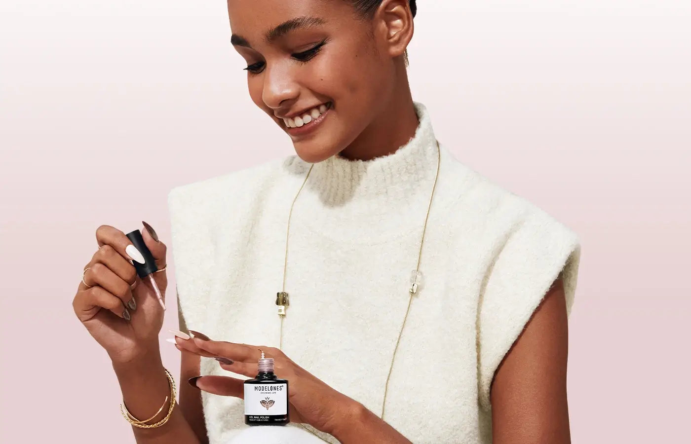 modelones content licensing, including Bustle, ELLE, SheKnows, Glamour, Byrdie, and more. It also includes a "2024 Readers' Choice NailPro"