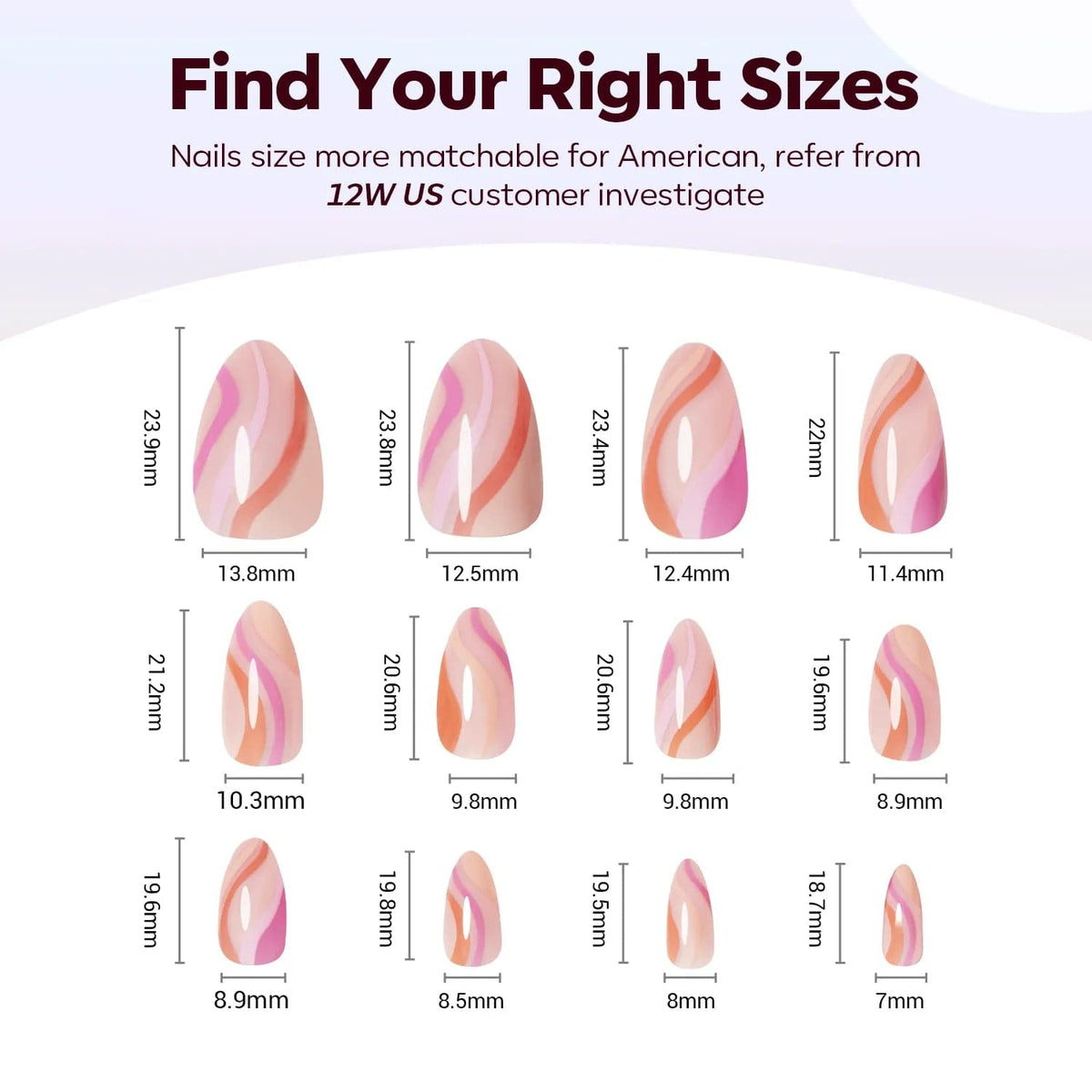 24 pcs 12 Sizes press on nail