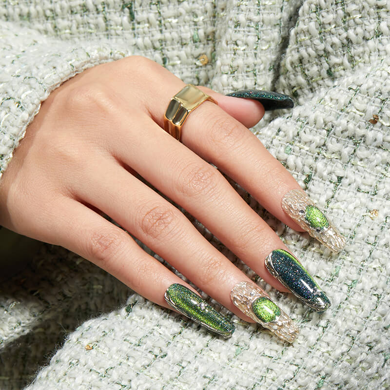 Apply color coats to get your desired effect, Cure under nail lamp.